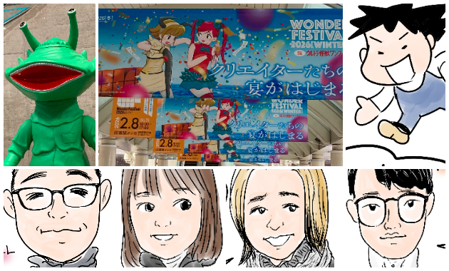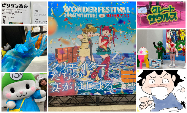 幕張メッセの会場入り口に「ワンダーフェスティバル2026[冬]」のキービジュアル! 設置された「ウルトラ怪獣ワンフェス」の案内パネル! 先日、大寒波襲来の中、開