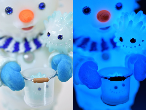 その上、バケツの上や尻尾など4箇所に雪をイメージした白フロッキー、
