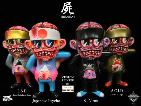 今年の「Taipei Toy Festival 2016」へBlackBook Toyが出店! 実は2016年10月1日でBlackBook Toyが5年目へに突入! そんな「BBT4周年」を記念し、BlackBook Toyブースにて「SKUM-kunカスタムショー」が行われるぞ! カスタムするのは4周年合わせで、4名の日本人アーティストたち。まず「SKUM-kun」クリエイター.Knuckle氏(Little Chop Design)、いつも彩色などで活躍しているMonster FarmのChop氏、原型で大活躍のKENTH TOY WORKS、そして最後はBlood Guts ToysのIzumonster氏! 今回は単に塗装やカスタムのスキルだけでなく、BlackBook Toyの重要な構成要素であるスケボー、ホットロッド、ストリートアート、タトゥーといったストリートカルチャーに造詣のあるアーティストを選んで依頼しているため、その仕上がりはいずれも“らしさ”全開! それぞれ「New Eraミニキャップ」と「スカム君バンダナ」が付属。