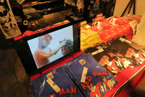 ↑ところ狭しと並べられた「レッドマン」グッズ。結構、色々あってビックリです!!