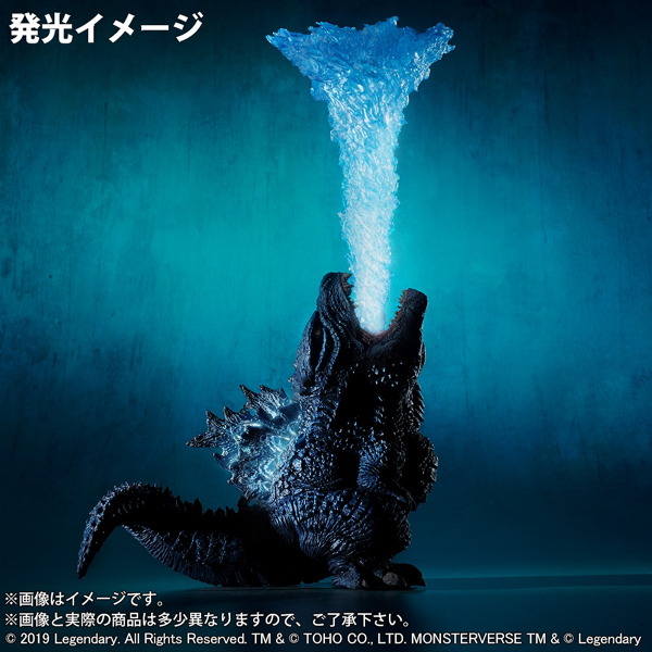 現在絶賛公開中の『ゴジラ キング・オブ・モンスターズ』登場のレジェンダリー版「ゴジラ」=「ゴジラ(2019)」が早くもX-PLUSのデフォルメ&リアルな[デフォリアル]にラインナップ! 予告映像などで印象的な、天に向かって熱線を放射するシーンの姿で造されている! 少年リック限定版は「熱線エフェクトパーツ」と背びれが発光する発光機能搭載で劇中イメージを再現できるぞ! ちなみに発光ギミックなしの一般流通版)7,700円/税込)も同時発売予定。