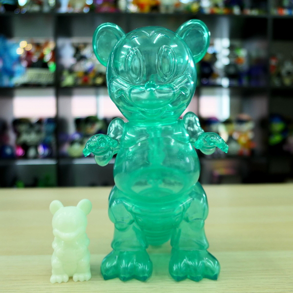 先日、アーティスト・Ron English氏とBlackBook Toyとの「MC Mousezilla」が即完売となったばかりなのに矢継ぎ早に新色「Emerald」が登場! あつーい夏を爽やかな気分にさせてくれる綺麗なクリアのエメラルドグリーンがとてもグッド! 「mini Mousezilla」が付属し、これは新色「Emerald」に合わせて「GR GID」だ。「Mousezilla」の中に入れれば、より幻想的に光って実にいい感じ! また注目なのが、そんな「mini」が付属して、お値段なんと10800円(税込)はお得すぎ! もはや「MC Mousezilla」と続けてゲットするしかないのでは?