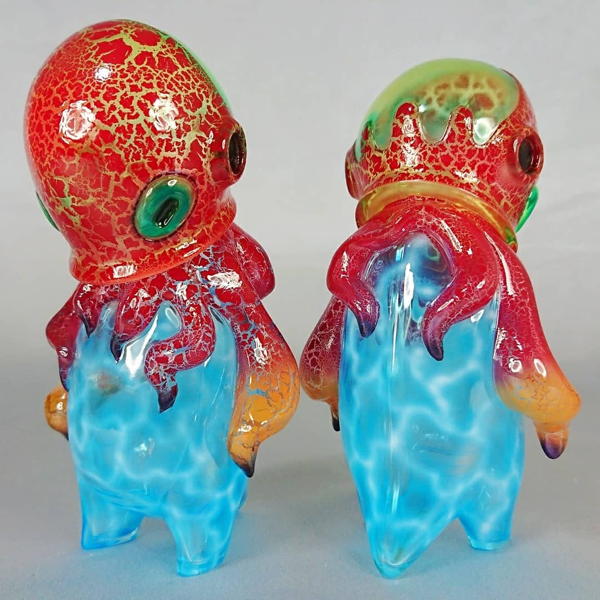 ↑前列左からクトゥー 蓄光(5,000円)、タコツボン ピンク(4,000円)、タコツボン ゴーストクリア(5,000円)、タコツボン 蓄光ピンク(5,000円/税込)、アモン(5,000円)。後列中央はダルマサンダ ピンク(6,000円)。各税込。