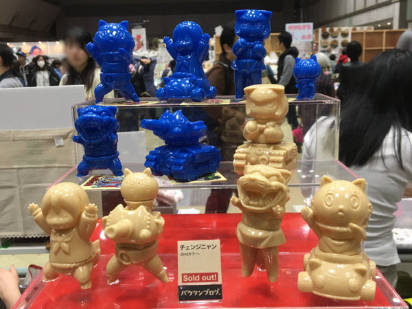 ↑C-toy’sちしまこうのすけ氏ブース。これまで原型&レジン作品で発表された「ネズミのチュッチュ」がついにソフビデビュー!