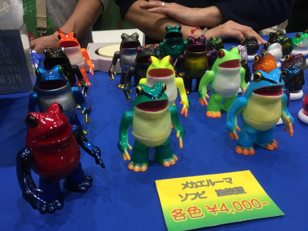 ↑ソフビ製作というより彩色メインで活動するペインターネットは「メカエルーマ」の様々なバリエーションを販売