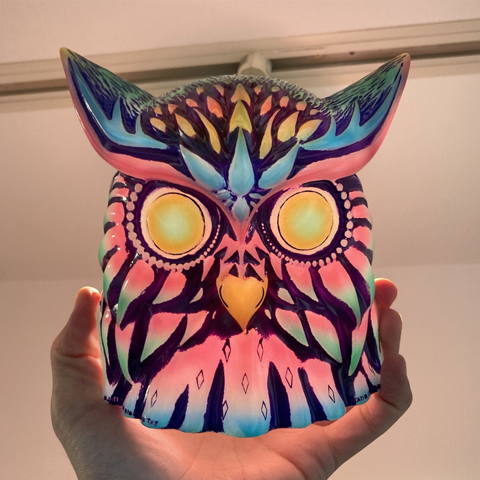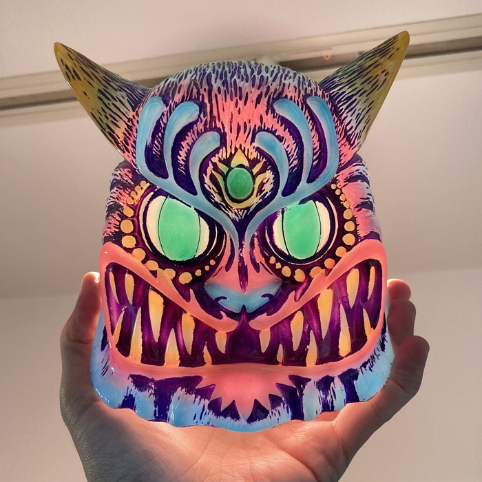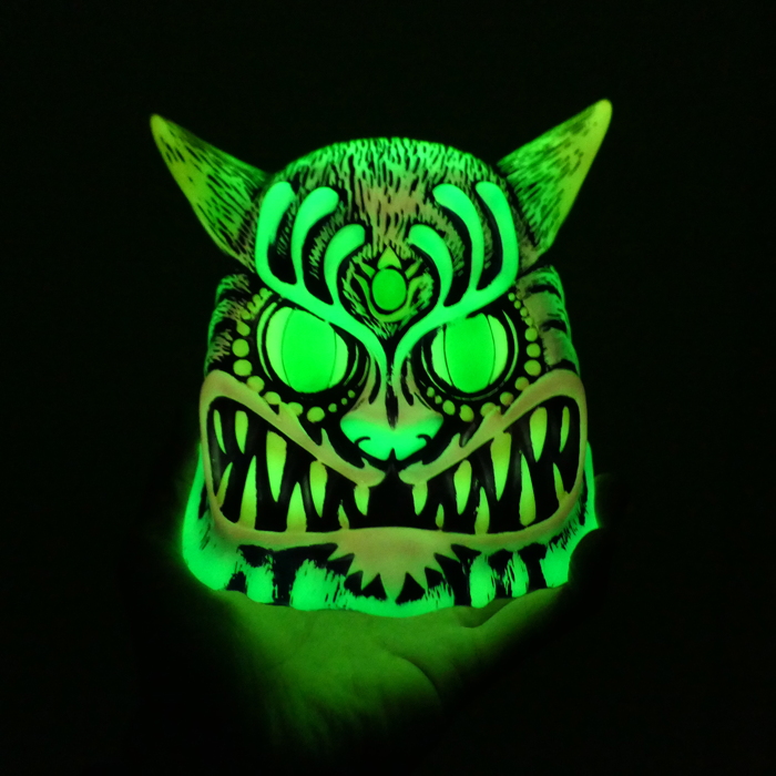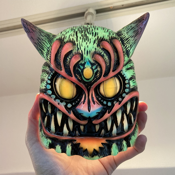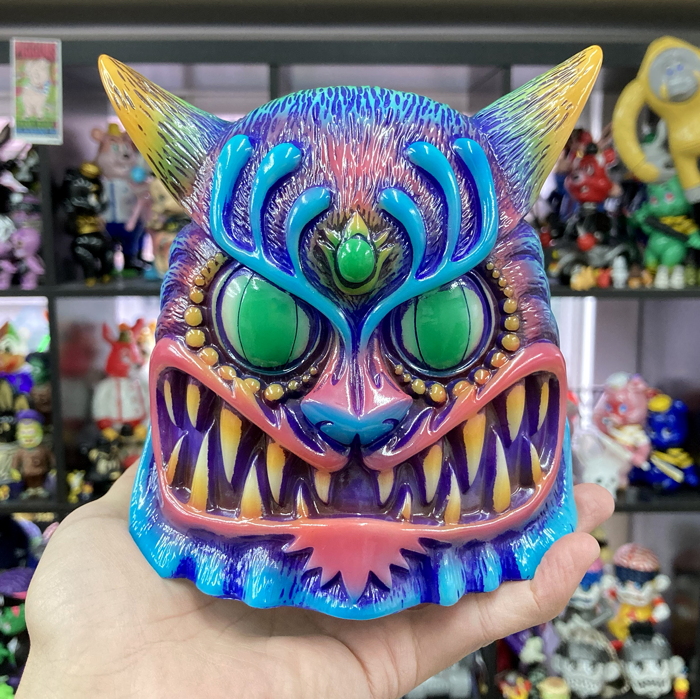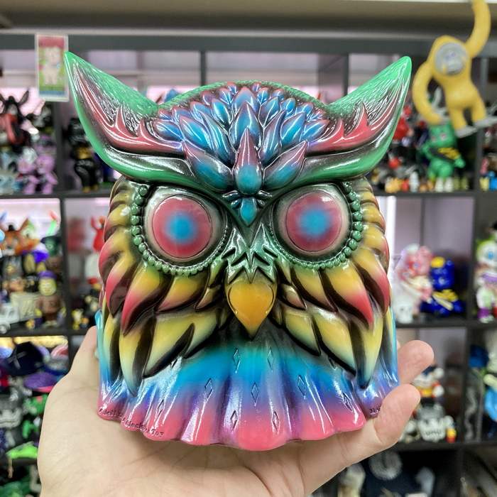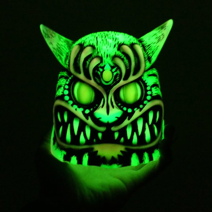 Jeff Soto氏とBlackBook Toyとの「NekoFukurou」で、久しぶりにMarvel Okinawa氏によるワンオフが登場! 量産版が2016年発売でワンオフも2018年以来となるので本当に久々……! そこで改めて説明すると、その名の通り片面が「ネコ」、片面が「フクロウ」の 1 パーツソフビで、 トーテムポールの様に積み重ねてディスプレイできる楽しい作品だ。BlackBook Toyマスコットの「GUY」のお面としてもピッタリなので、もしGUY」を持っているならぜひかぶせて欲しい! 全4種でいずれも蓄光成型へ拭き取りとエアブラシで彩色されており、通常はもちろん暗闇での発光もとても綺麗で、インパクトある仕上がりになっているそ! 今回も全て1点モノのためメールによる抽選販売となる。応募詳細は公式ブログも確認せよ!