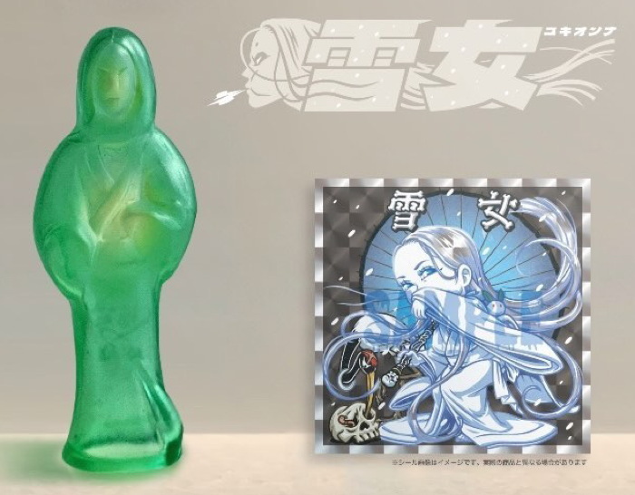 またまたソフビ会に注目の新ブランドが登場! 福笑玩具のデビュー作となる「福笑玩具の怪奇シリーズ 雪女 シールセット」発売される! ちなみに「雪女」とは「雪の降る夜ひそかに現れる女の姿をした妖怪」だ! それをモチーフにしたソフビとシールのセット! シールもいい感じだが、カラーはグリーンクリアのチープでレトロ感のある仕上がりが実に良い! 今後どのような展開を見せてくれるのか楽しみ! その第1弾となる「福笑玩具の怪奇シリーズ 雪女 シールセット」は、ぜひチェックしておきたい! 2022年7月中旬にInstagram、Twitterにて予約受付とのことだが予約者多数の場合は抽選販売となるので注意!