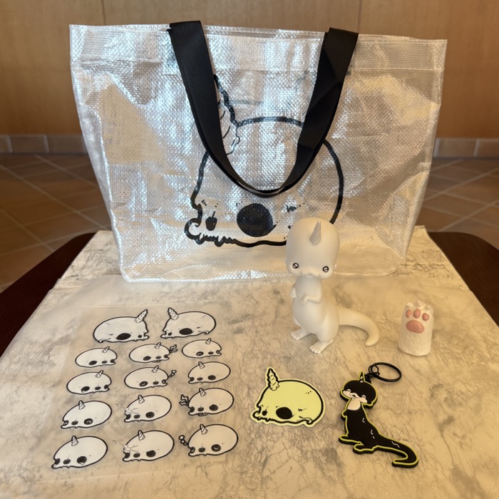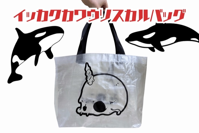 “めーちゃんといっしょ”さん描き下ろしのスカルデザインがクールな特製ビニールバッグ/2,000円