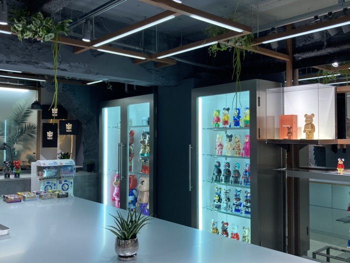 店内全景。ガラスケースに収められた数々のトイが、訪れる者を圧倒する