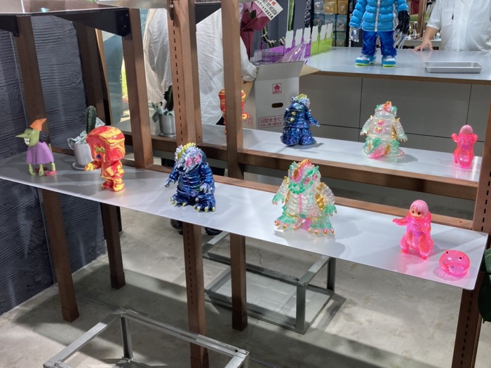 こちらも見逃せない限定ソフビたち。左から「ソフビ なまえのないかいぶつ」「ShocKING (Fire Marble)」「ヴォイドン MEDICOM TOY TOKYO Ver.k」「ヴォイドン MEDICOM TOY TOKYO Clear」「明太子怪獣 メンタイゴン ファンシーピンク」。店頭受付で2025年8月31日締切!