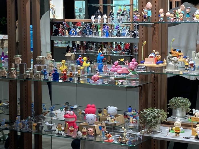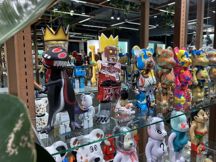 「JEAN-MICHEL BASQUIAT」ソフビなど様々なキャラクターが入り乱れるディスプレイは、まさにおもちゃ箱をひっくり返したような楽しさだ