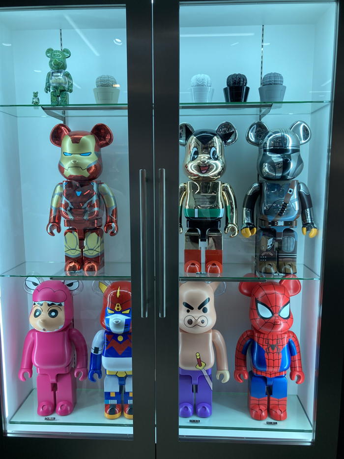 棚にぎっしりと並んだ「BE@RBRICK400%」。お目当てのモデルを探すだけでワクワクする