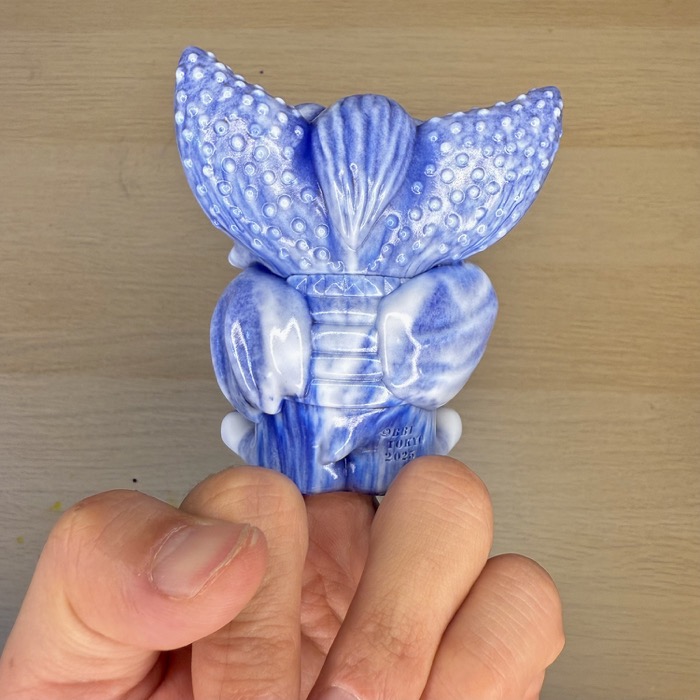 先日開催されたアーティスト・Melo Wang氏の初個展「War Inside My Head」にてデビューした新規造形「mini Demon Guyru」が、待望のBlackBook Toyオンライン抽選販売に登場! 今回のバージョンは、青花磁器を彷彿させる特殊なマーブル成型「BLxWH Porcelain」で、無彩色でもインパクト大! また「mini Demon Guyru」の「ベロ/Tongue」「バーッ!/Boo!」「僕!?/Me!?」は1パーツの指人形仕様だが、通常よりサイズが大きいのが特徴。うまくやれば3種をトーテムポールのように積み重ねることも可能なのだ! そして今回、同成型の「Demon Guyru」もラインナップ! 注目は4種まとめて購入した場合、特典として、なんとMelo氏本人が「Demon Guyru」のお腹にイラストを描いてくれるというので見逃せない! 数に限りがあるため、抽選販売となる。応募詳細はこちらもチェック!