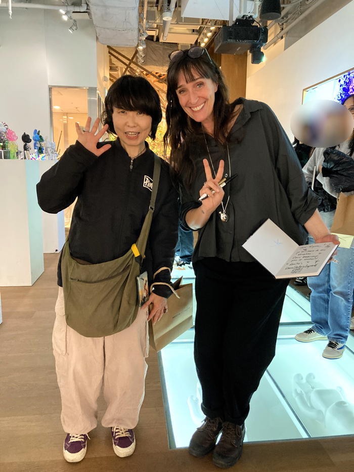アン・ヴァレリー・デュポンさん(右)と今回取材に同行したエビキヨ先生(左)のツーショット。アンさん同様に動物大好きなエビキヨ先生はアンさんの作品を目を輝かせて凝視! アンさんを取材したルポマンガも同時に公開予定なのでお楽しみに!