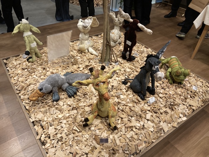 ウッドチップが敷き詰められたエリアには、陸上の生物たちがズラリ。アンさん自身が「自然が生み出す不思議な動物に惹かれる」と語る通り「カモノハシ」や「ロバ」「フェネック」などユニークな造形で息づいていた!