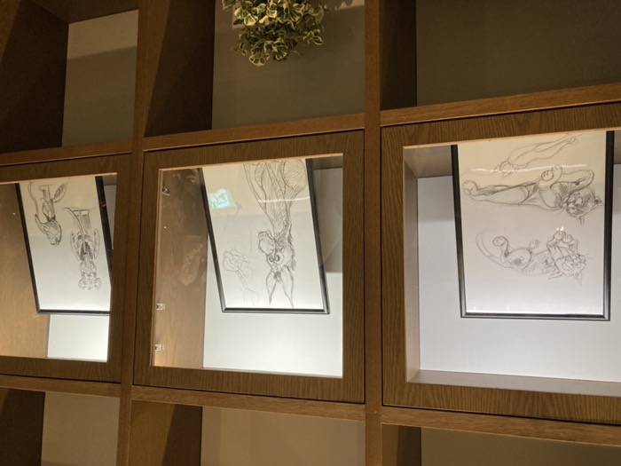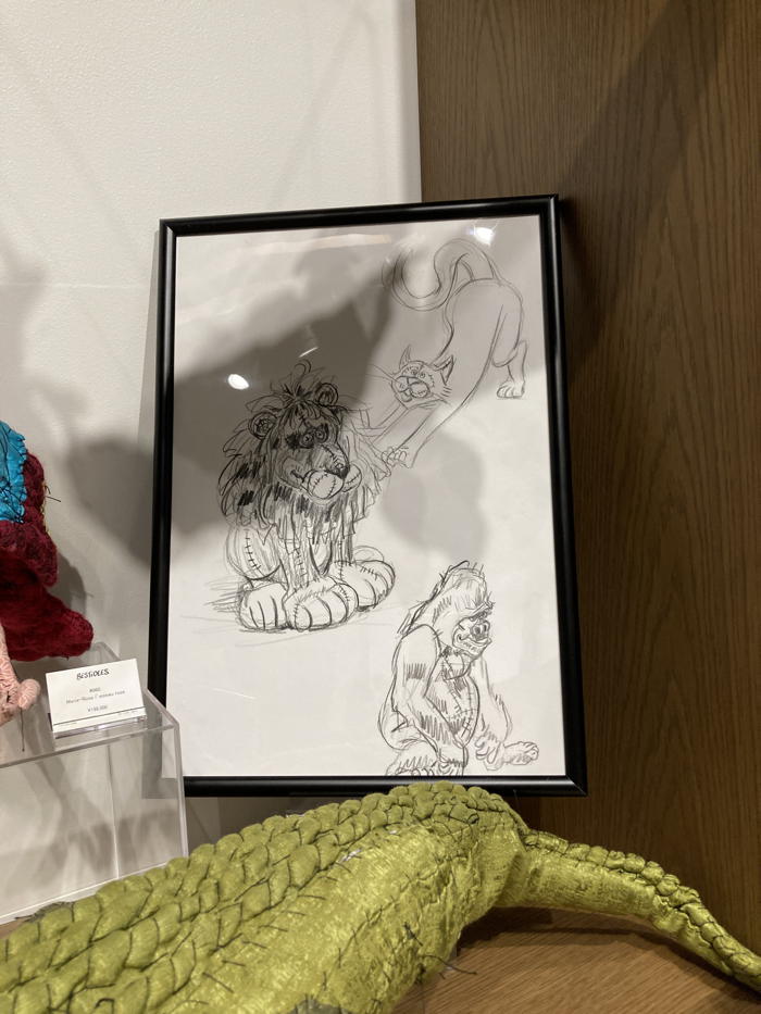 会場には、アンさんが描いた、さまざまなスケッチも展示。シンプルな線で動物たち作品のユニークな表情を捉えておりとても魅力的だ。