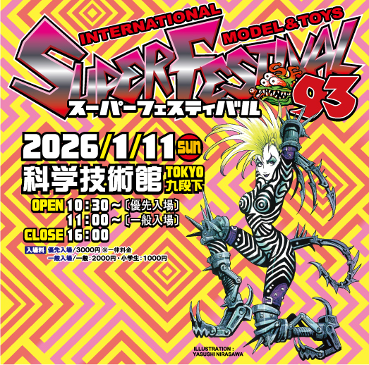 古今東西のおもちゃが一堂に会するアート・ストーム主催の「スーパーフェスティバル93」が、2026年1月11日に東京・九段下の科学技術館にて開催決定! 新年第1弾となる今回の「特撮アーカイブ」ゲストには、特撮レジェンドの伴大介氏、さらに円谷作品から西恵子氏と鵜川薫氏のダブルヒロイン、そして『超光戦士シャンゼリオン』主演の萩野崇氏が登場と、まさに豪華絢爛な顔ぶれが集結! ここでは各ゲストによる貴重なトークショーはもちろん、各ゲストによるサイン会など、ファン垂涎のコンテンツが目白押し! 新年早々、憧れのヒーロー&ヒロインと交流できるこの機会、特撮好きなら絶対に見逃せない! 入場方法やサイン会の参加条件など、詳細は公式サイトを事前にしっかり確認した上で、会場へ駆けつけよう。各メーカーの新作ソフビ情報も続々と届いているので、そちらも併せてチェックすべし!