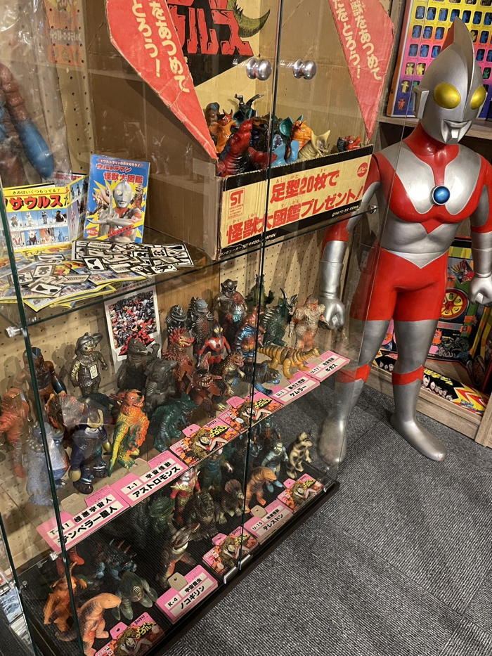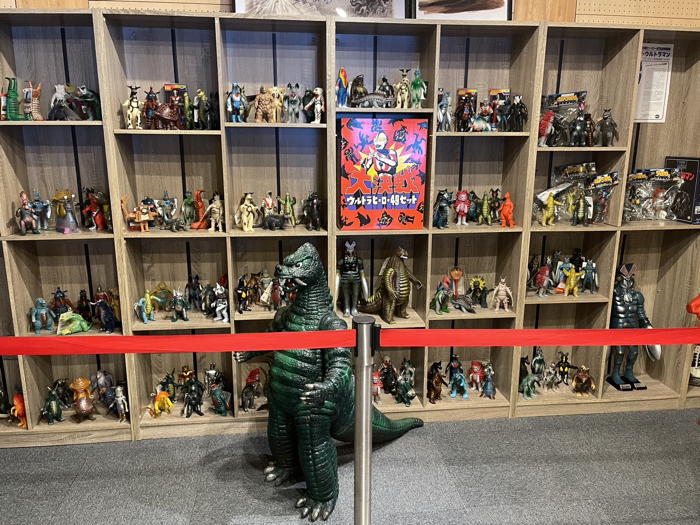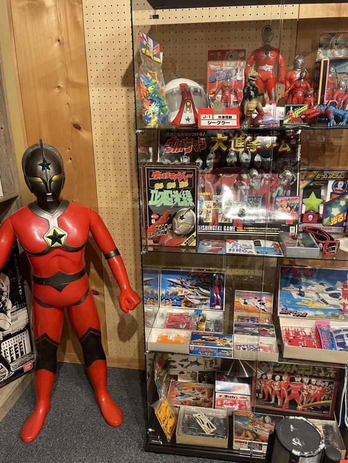 圧巻の店頭用ソフビたち! 「ウルトラマン」「レッドキング」「ウルトラセブン」「ザ☆ウルトラマン」が古民家の空間で圧倒的な存在感を放つ!