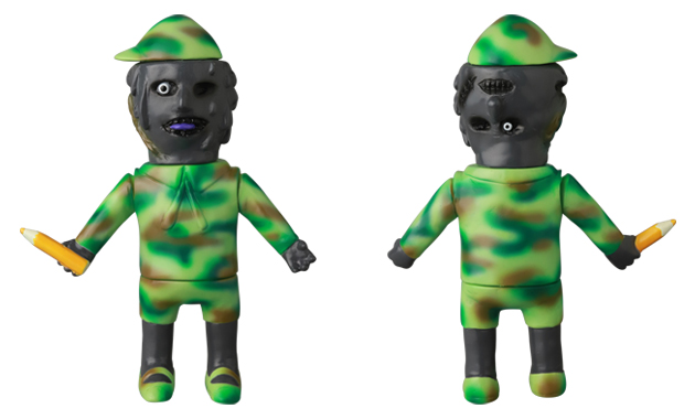 メディコム・トイと大のソフビ好きとして知られる芸人バッドボーイズ・佐田正樹氏による「とろみ君」の第9弾が、ショップ・MEDICOM TOY NEXT限定で登場! 本作は、いまやソフビ界のベテラン原型師・あべ♨とおる氏の製作指導のもと、佐田氏自らが原型製作を手がけた意欲作! 「9期」となる今回は、帽子と衣装に鮮やかな迷彩柄を纏ったミリタリースタイルでラインナップ。最大の特徴である、顔から滴り落ちるような“とろみ”を感じさせる造形は、ダークトーンの彩色によって不気味さとユーモアが絶妙に融合している。手に持ったオレンジ色の鉛筆がアクセントとなり、唯一無二の世界観を演出。全高約15cmのサイズに、佐田氏のこだわりが凝縮された逸品だ。抽選販売となるため、詳細はメディコム・トイからのアナウンスを確認してほしい。