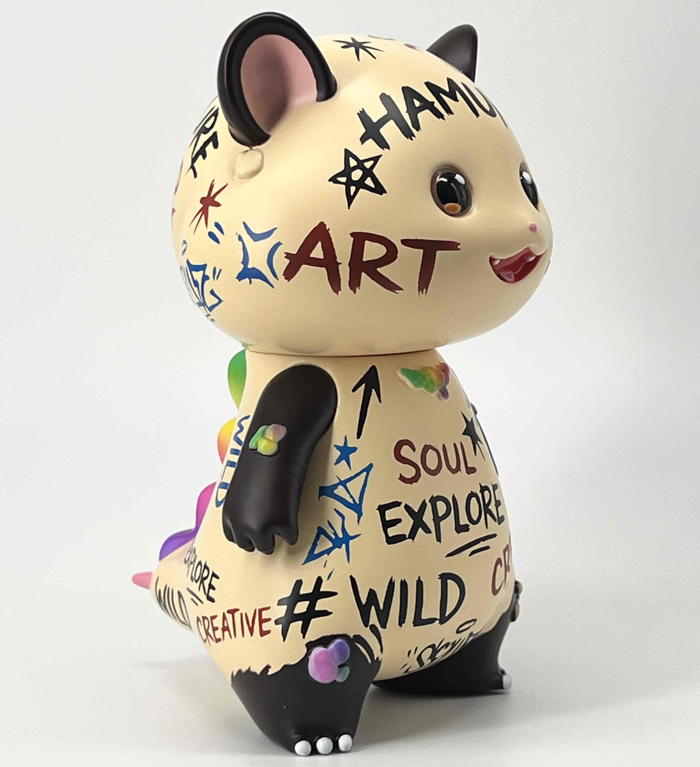 「ワンダーフェスティバル2026[冬]」にて、原型師として『宇宙兄弟』や『少年アシベ』なども手掛ける注目のクリエイター・ヨシダケンジ氏自身の作品[ハムラとハムオ]から、メインキャラクター「ハムラ」が待望のソフビデビュー! 記念すべき初陣を特別な「デビューカスタム」版が飾るのだ! 「きみと一緒なら、”ちがい”は”たからもの”になる」という温かなテーマを持つ本作だが、今回のカスタムは一味違う。大きな背びれを持つハムスター「ハムラ」のボディをキャンバスに「ART」「SOUL」といった力強いメッセージをグラフィティスタイルで表現。かわいらしさの中にエッジの効いたストリートの「魂」を感じさせる、唯一無二の仕上がりは必見! まさにヨシダ氏のクリエイティビティが凝縮されている! 今後はオンラインや店舗展開も予定されているが、まずは会場でこの熱量を体感してほしい!
