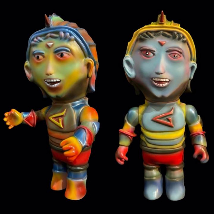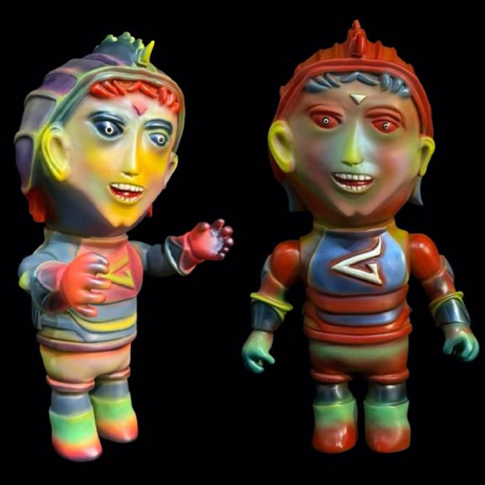 名古屋の大須にあるアクセサリーとオブジェのセレクトショップ・Sipkaに、タイの注目ソフビアーティスト・SKARNZ(スカーンズ)の新作が上陸! 今回は2つのキャラクターがそれぞれ4色展開で登場。まずは全高約30cmという圧倒的なボリュームを誇る「Galaxy Boy」は、ジェット機やアーマースーツを自ら生み出して戦う天才発明家という設定で、レトロフューチャーな味わいと迫力の造形が融合した一作。そしてもう1体「Twin Commander」は、遠い惑星の司令官で、戦闘能力を高めるために身体を改造し、なんと頭の横にクローン化した「第2の脳」を取り付けているというマッドな設定が最高! 全高約20cmで7パーツ構成となっており、独特なシルエットがクセになる。いずれも4色ラインナップされており、SKARNZならではのユーモアと毒っ気が混在した独特な世界観は必見! 2026年2月14日よりショップ・Sipka店頭にて先行販売され、同日夜にオンラインショップででも販売開始予定。ただし店頭完売の場合、オンライン販売は無しなので注意! この機会に未知なる宇宙のヒーロー(?)たちをゲットしよう!