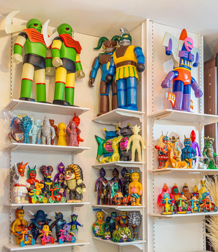落ち着いたライティングが施されたギャラリー内観。ここでは、シマックス&マーベリッククリエイトがこれまでに企画&製造に関わったソフビを始めとした貴重なコレクションが所狭しと並ぶ。ここだけの出会いが待っていそうだ