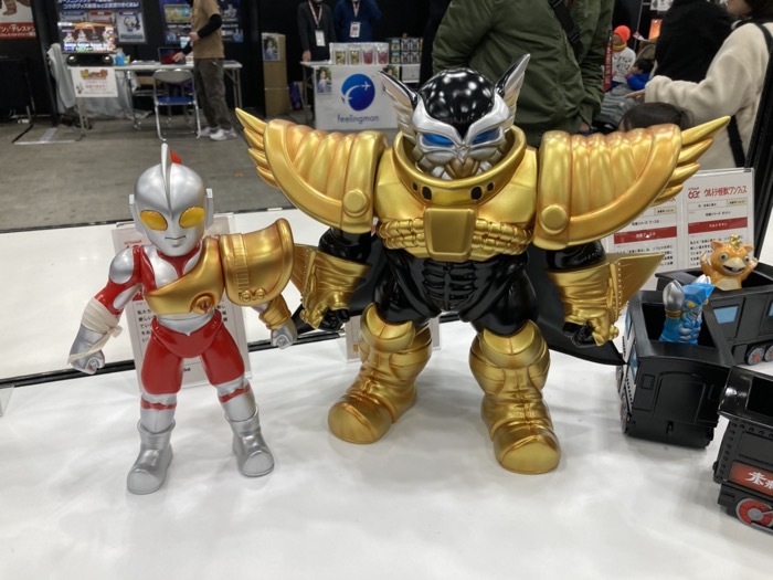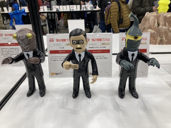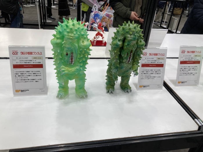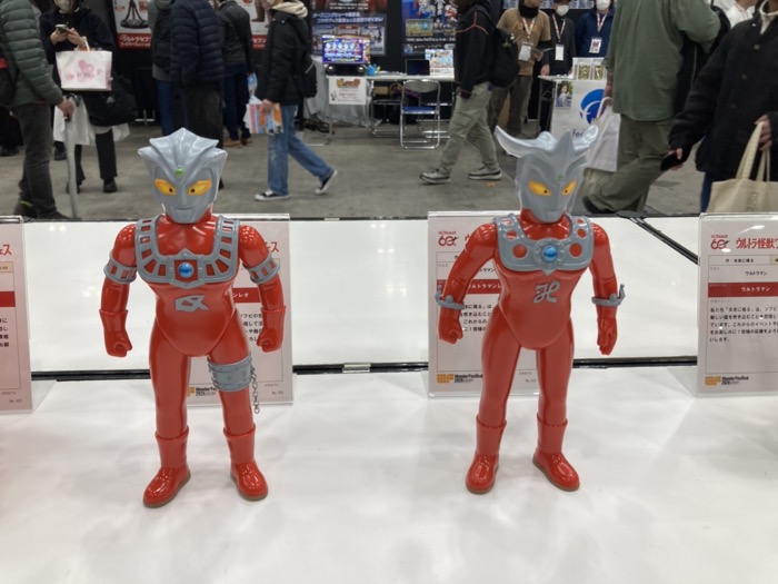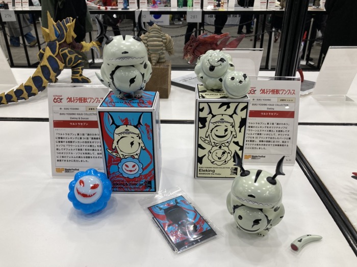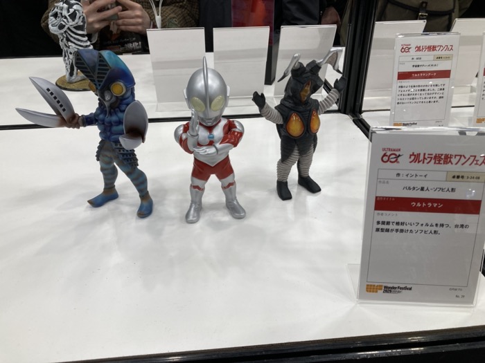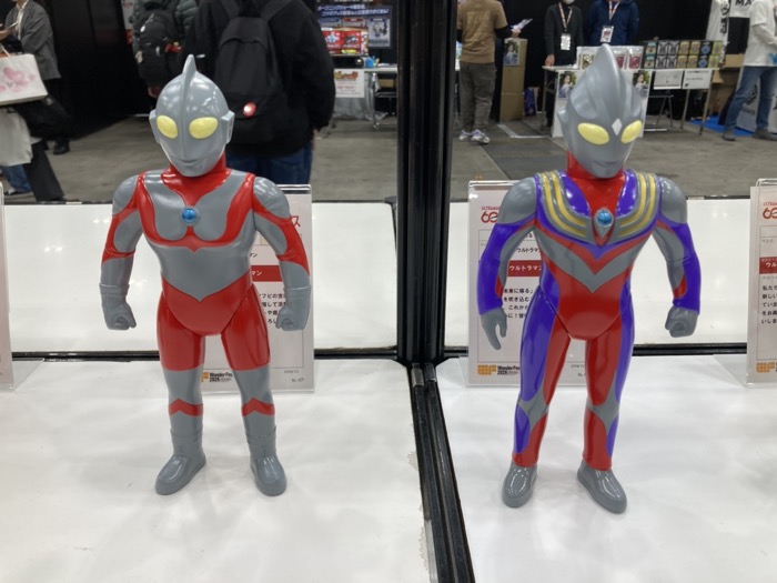 先日、大寒波襲来の中、開催された「ワンダーフェスティバル2026[冬]」の目玉企画として大きな注目を集めた「ウルトラ怪獣ワンフェス」特設ブース! 入り口では「ウルトラマン」&「ミラーマン」立像がお迎えし、一足踏み入れると「ウルトラマン」&「ウルトラマンティガ」、「ウルトラマンノア」&「ダークザキ」などのスーツも大迫力で展示されていた。さらに会場の奥には、1999年放映の『ブースカ! ブースカ!!』の「2代目ブースカ」&「カモスケ」の着ぐるみもあり! これには「エビ沢キヨミのそふび道」でお馴染みのエビキヨ先生も大興奮!! そんな、どこを見渡しても見どころ満載の「ウルトラ怪獣ワンフェス」だが、中でも円谷プロ完全協力のもと、選ばれしクリエイター&メーカーが手がけた「ウルトラ怪獣」がずらりと並んだ展示エリアは圧巻! 各メーカーやクリエイターの個性際立つ怪獣チョイスはもちろん、デフォルメ造形やスプレーワークなど、多様な解釈による「ウルトラヒーロー&怪獣」たちは見応え十分だった! 作品に添えられたプレートには、この日の出店ブース番号も記載されており、各ブースでそれらを販売していたディーラーも多数いた模様。そんな「ウルトラ」シリーズ60周年に向けた盛り上がりを肌で感じられる、ソフビ好き必見の熱いエリアを紹介しよう!