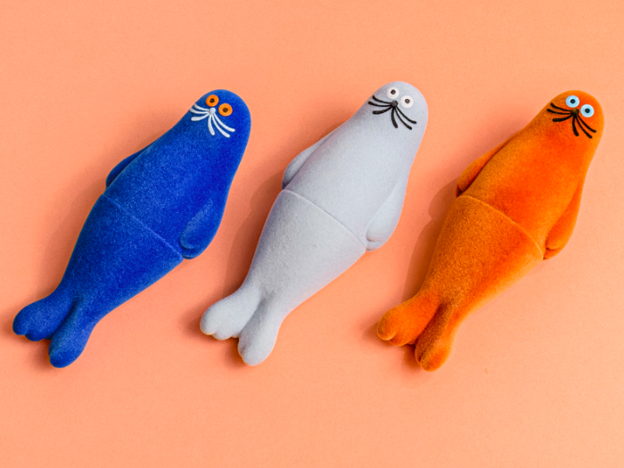 umao × 中空工房 アザラシ GRAY FLOCKY、BLUE FLOCKY、ORANGE FLOCKY
