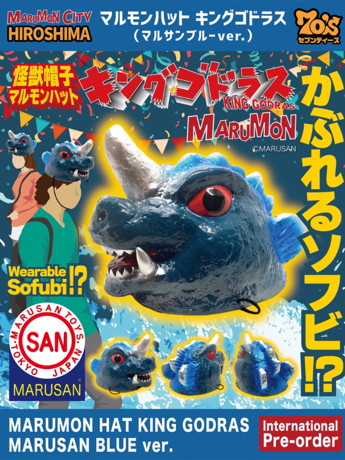 “飾る”から”被る”が注目のマルサン製[マルモンハット]で、昨年イベント発売された「キングゴドラス(マルサンブルーver.)」が、「マルモンシティヒロシマ」=ショップ・70’sセブンティーズに寄せられた全国のソフビ好きの熱いリクエストに応えて特別受注が決定! これはマルサン怪獣ソフビの原初となる成型色を彷彿とさせる鮮やかな「マルサンブルー」で仕上げられ、まさに原点回帰と創造の再生を体現した逸品! 1970年代の温もりを宿した造形を頭上に戴き、自らが怪獣となって街へ繰り出すという、遊び心に溢れたコンセプトがたまらない! ソフビ好き、そして粋な「怪獣使い」たちに捧げる、まさに「傾(かぶ)る」アイテム! 生産数には上限があり、予定数に達し次第、販売受付終了となるため、この機会を逃さずチェックしてほしい!