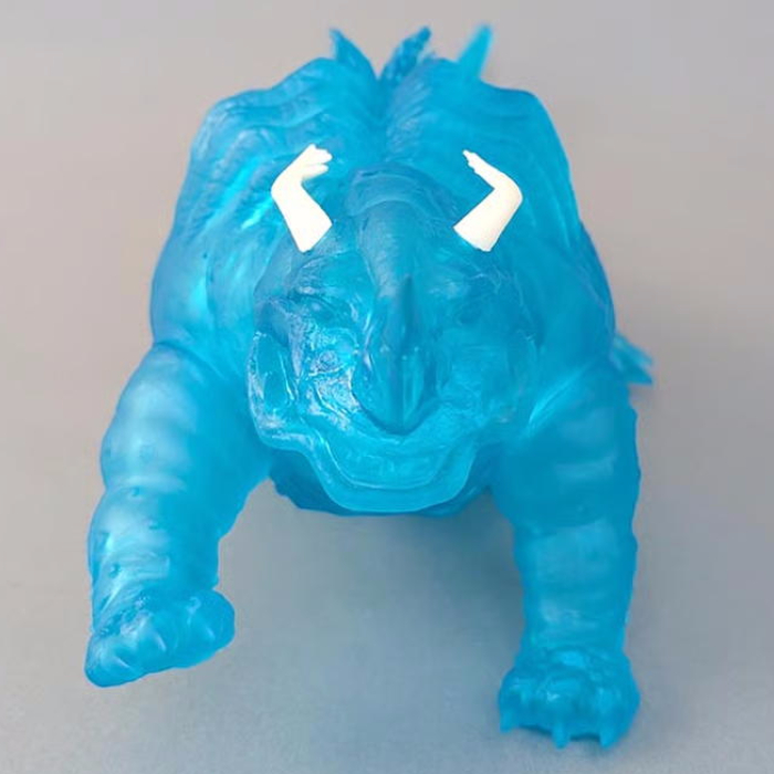 怪獣ソフビ好きが毎月その動向を注視するビリケン商会から恒例の月末新作情報が到着! 昨年10月の「砂色」、12月の「蜜柑色」に続いて、特殊造形作家・福田雅朗氏が原型を手掛けた注目の新作「ネロンガ」に、早くも第3弾となる新成型色が登場! 注目の新色は、まさに「透明怪獣」の真骨頂とも言える「青透明色」だ! 『ウルトラマン』第3話「科特隊出撃せよ」登場の「ネロンガ」は、電気を食べて透明化する能力を持つが、今回のクリアブルー成型色は、劇中で電気を吸収し姿を現す際のエネルギーの煌めきや、どこか神秘的な質感を想起させる仕上がり! 福田氏による、着ぐるみのシワや生物的なボリューム感を完璧に捉えた造形が、クリア成型によって光を透過し、これまでの不透明色とはまた異なる、内側から溢れるような密度感を見せつけてくれる。そのまま組んで「透明怪獣」としての佇まいを楽しむもよし、クリアを活かした塗装で自分だけの「ネロンガ」を表現するもよし! ソフビ者は発売時間を正座して待つべし!!