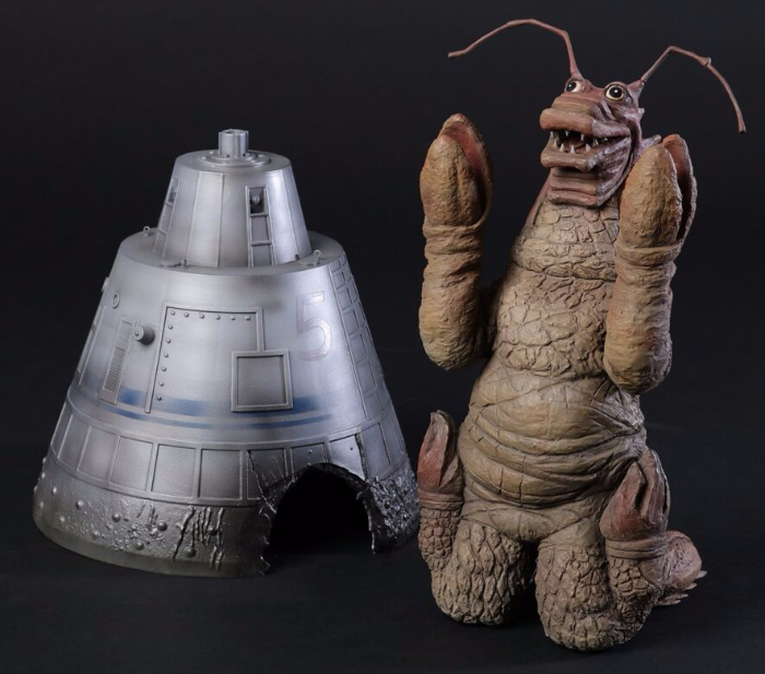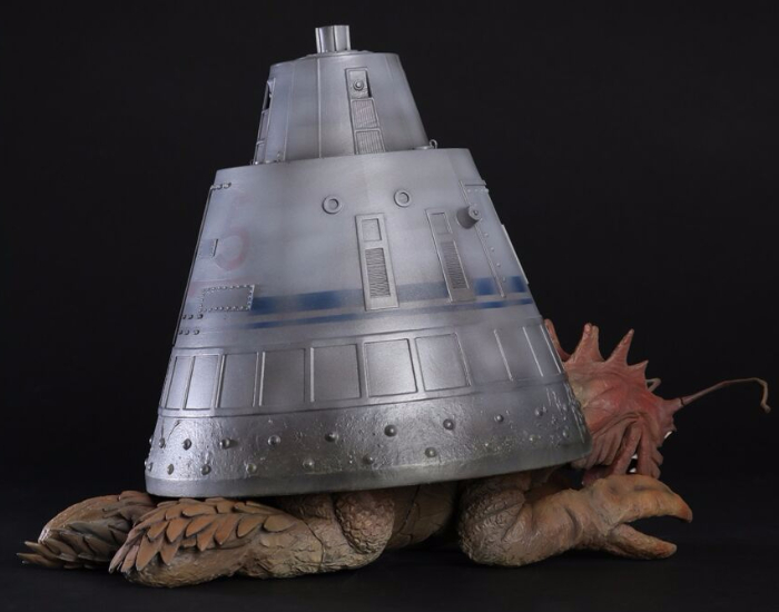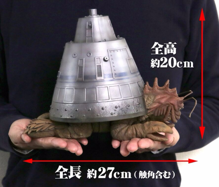 『帰ってきたウルトラマン』第29話「次郎くん怪獣に乗る」に登場した宇宙怪獣「ヤドカリン」が[大怪獣シリーズ]にラインナップ! 「MAT」の「無人宇宙ステーションNo.5」に棲み着き、「次郎少年」が閉じ込められているため「ウルトラマンジャック」もむやみに攻撃できず苦戦を強いられた相手だ。ここでは「ジャック」との戦闘時の膝立ちポーズを基本に、その特徴的なプロポーションとポーズを見事に造形で再現。さらに、付属する腰パーツと両足パーツを交換することで劇中の「四つ足ポーズ」に変更できるだけでなく「無人宇宙ステーションNo.5」を背中に被せることも可能というプレイバリューの高い逸品になっている! 少年リック、ツブラヤストアONLINE限定となるので絶対に見逃すな!