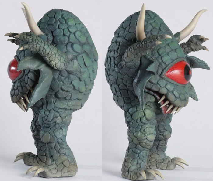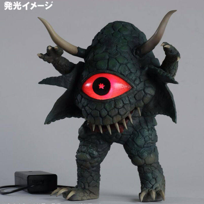 『ウルトラマンレオ』第33話「レオ兄弟対宇宙悪霊星人」に登場し、周囲を暗黒空間に包み込んで「ウルトラマンレオ」を苦戦させた「宇宙悪霊アクマニヤ星人」が[大怪獣シリーズ]に仲間入り! 怪奇隕石の状態で地球に飛来し、無数の悪霊となって数々の怪奇現象を引き起こした不気味な姿をソフビ化。独特なプロポーションや体表の質感、鋭い牙や爪といったディテールも細部までこだわって造形されている。さらに「アクマニヤ星人」の魅力を最大限に表現するため、最大の特徴である巨大な目玉に発光ギミックを内蔵! 付属の電源ユニット(単3電池×2本使用/別売り)を使用することで、劇中さながらに巨大な目玉が怪しく光るぞ! こちらも少年リック、ツブラヤストアONLINE限定となるので、ぜひコレクションに加えてその不気味な魅力を堪能しよう!