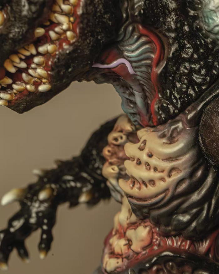 ショップ・Toy Art Galleryにて2021年始動の注目ブランド・NPKによる待望の最新作「Sin Primordial」が、極少数限定を抽選販売! このNPKとは「NARK(麻薬)」「PAGAN(異教徒)」「KILLER(殺人者)」の頭文字で、これは人間精神が持つ3つの闇を象徴しているが、そんな社会が求める抑制を脱ぎ捨て、フィルターのない「完全な自己」を肯定するという独自の哲学をコンセプトに活動している。NPKにとって闇とは「縛る鎖」であると同時に「究極の自由」でもある! そんなNPKの作品「Sin Primordial」は、全高約25cmを超えるボリュームに、緻密に作り込まれたテクスチャと鮮烈な彩色が融合した圧巻の仕上がり。剥き出しの肋骨が覗く胸部や、クリアブルーに輝く背びれ、まるで「シン・ゴジラ」を彷彿とさせる尾先端の頭部など、全方位から隙のない造形密度を誇っている! 「WE ARE NPK!」というブランドスローガン通り、手にする者の心に深い感情的な抑制の解法を呼び起こす芸術品と呼ぶに相応しい一品だ。この圧倒的な闇の造形を、ぜひあなたのコレクションに迎えよう! 肝心な抽選への参加方法はメールオーダーで、件名を「NPK Lottery」とし、本文にPayPalアドレス、配送先情報、電話番号を明記してToy Art Galleryメールオーダーへ2026年4月13日12時(※米国太平洋標準時/PST)までに送信する。